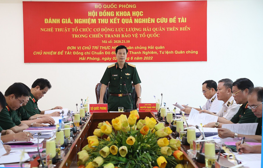 Sáng 2/6, tại Hải Phòng, Hội đồng khoa học quân sự Bộ Quốc phòng tổ chức đánh giá, nghiệm thu kết quả nghiên cứu đề tài nghệ thuật quân sự cấp bộ. Trung tướng Nguyễn Trọng Bình, Phó Tổng Tham mưu trưởng Quân đội nhân dân Việt Nam, Chủ tịch hội đồng khoa học quân sự Bộ Quốc phòng chủ trì. Đề tài do Chuẩn Đô đốc Trần Thanh Nghiêm, Tư lệnh Hải quân làm Chủ nhiệm.
