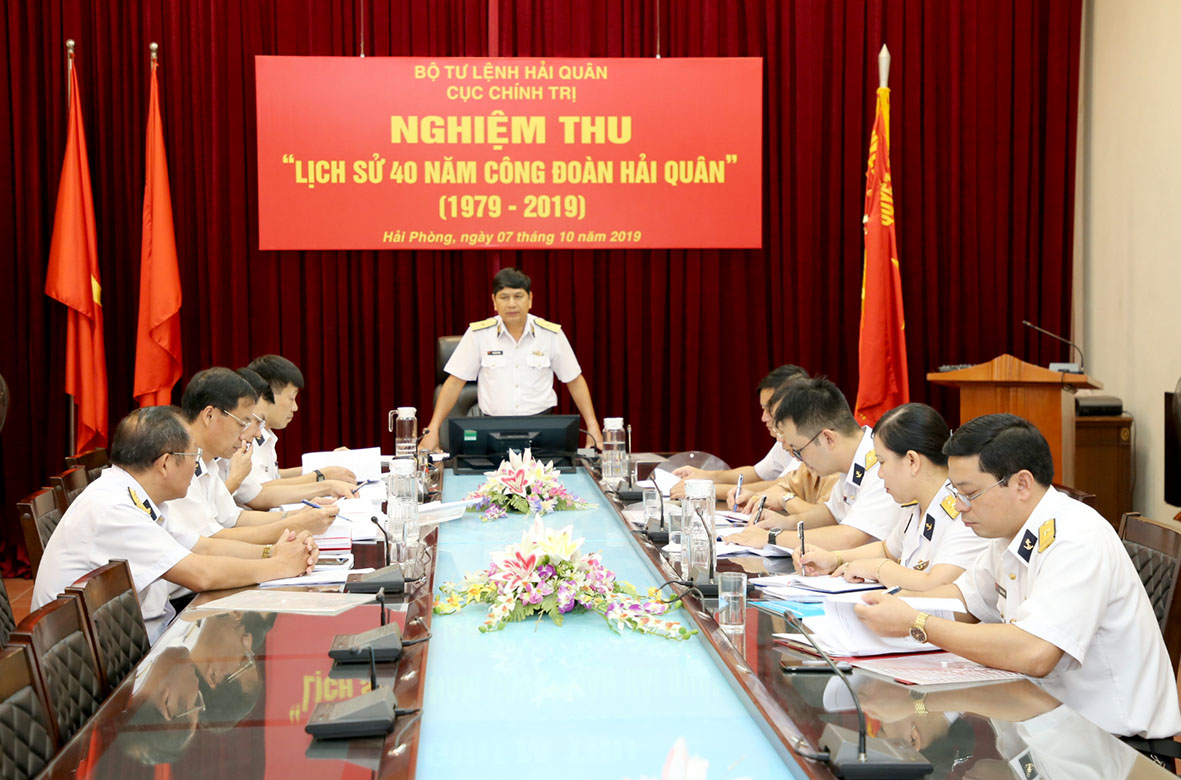 Chiều 7-10, tại Hải Phòng, Cục Chính trị Hải quân tổ chức nghiệm thu “Lịch sử 40 năm Công đoàn Hải quân” (1979-2019). Chuẩn Đô đốc Ngô Văn Thuân, Phó Chủ nhiệm Chính trị Hải quân chủ trì.