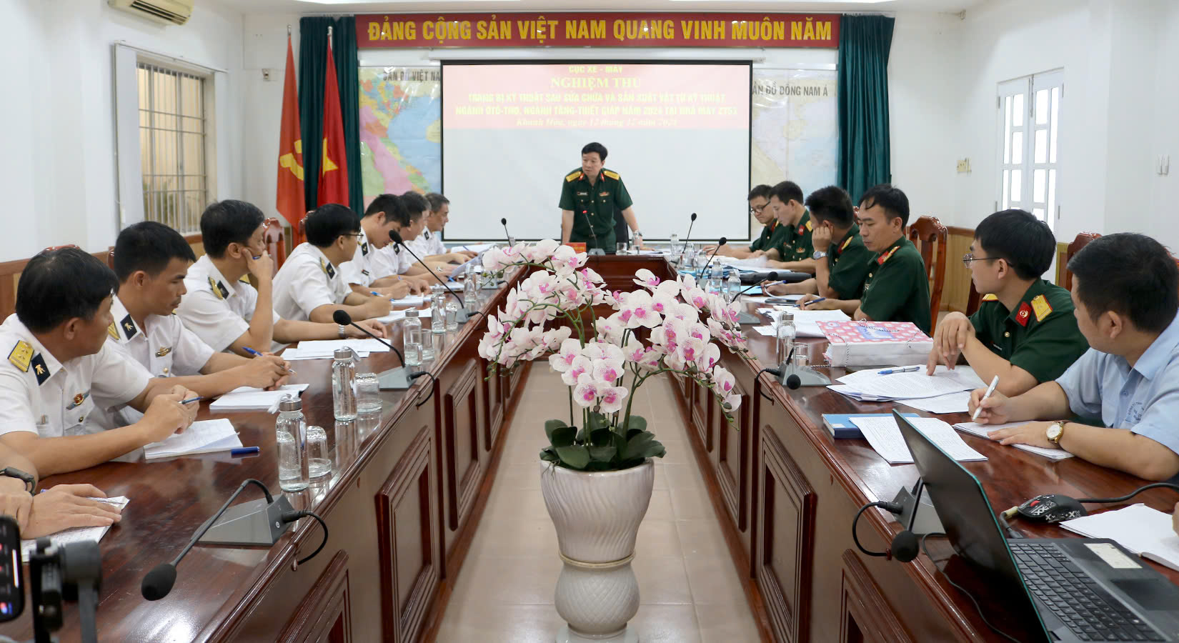 Ngày 12/12, tại TP. Nha Trang, tỉnh Khánh Hòa, Hội đồng nghiệm thu của Cục Xe - Máy, Tổng cục Kỹ thuật đã tiến hành nghiệm thu sau sửa chữa xe ô tô -trạm nguồn điện và các mặt hàng vật tư kỹ thuật được sản xuất tại Nhà máy Z753, Cục Hậu cần - Kỹ thuật Hải quân. Đại tá Nguyễn Đức Lượng, Phó Cục trưởng, Chủ tịch Hội đồng nghiệm thu chủ trì.
