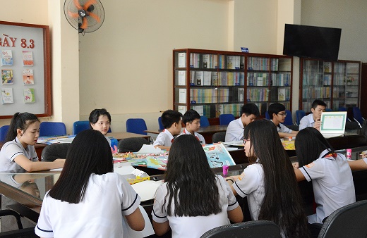 Giờ đọc sách tại thư viện của học sinh Trường THCS-THPT Hồng Hà