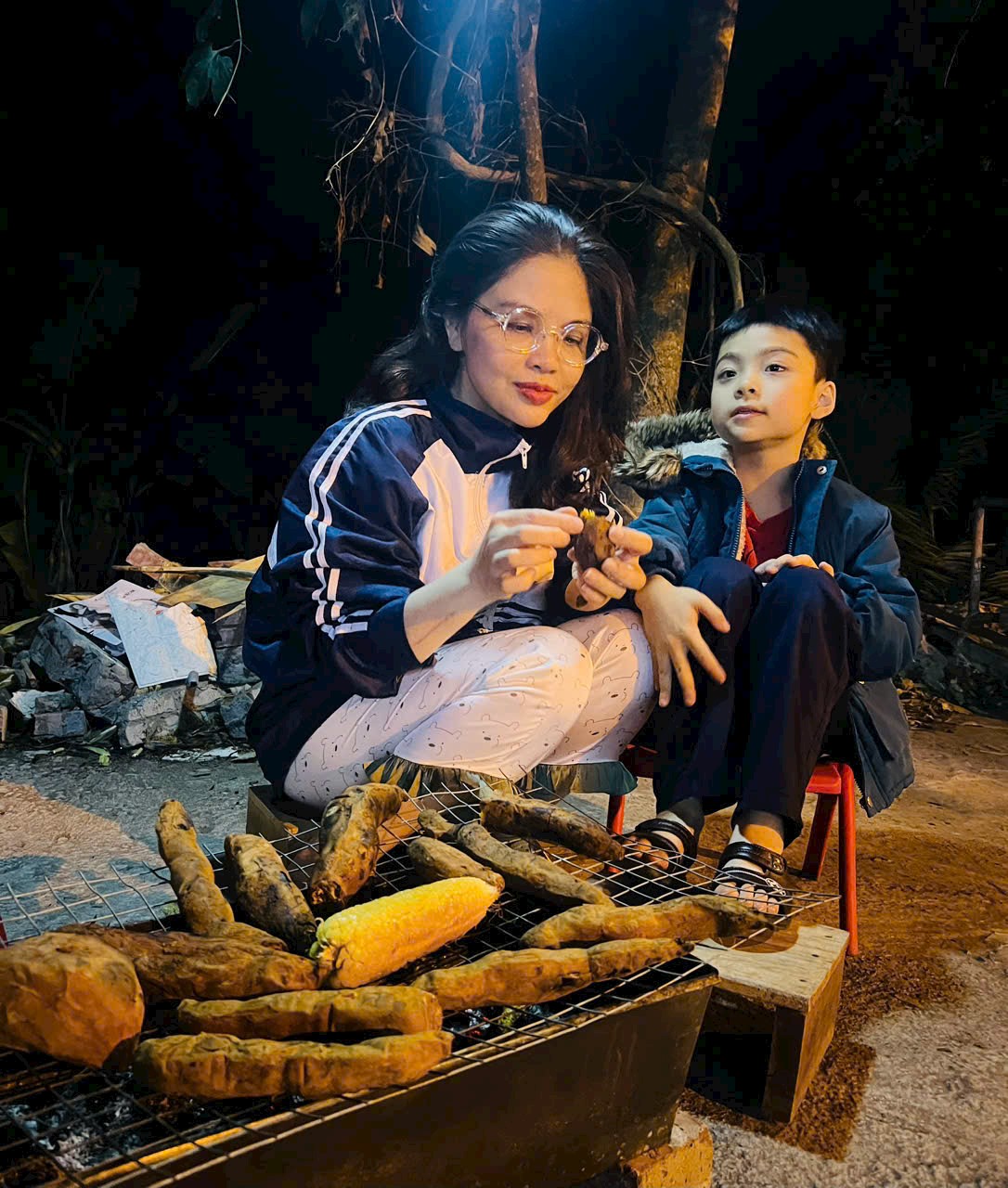 Bữa cơm được dọn ra, đơn giản mà hấp dẫn. Mọi lần, mẹ con Hoài vừa ăn vừa tấm tắc khen ngon. Nhưng hôm nay, Hoài và con gái “chê cơm”. Mùi khoai thơm lựng khắp gian bếp nhỏ. Khoai được bọc kỹ nên vẫn nóng hôi hổi. Bên trong làn vỏ dày cháy sém là những thớ thịt vàng như ướp mật. Vị khoai ngọt lịm làm tê đầu lưỡi. Con gái Hoài không muốn bố bóc khoai bẩn tay, thỉnh thoảng lại bảo bố há miệng thật to rồi đút khoai cho bố. Cả nhà vừa thổi vừa ăn, vừa trêu nhau và cười khúc khích.