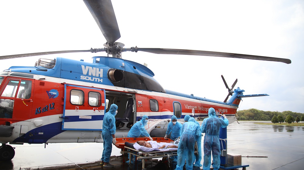 Bệnh nhân được đưa lên máy bay về đất liền điều trị. Ảnh: CTV