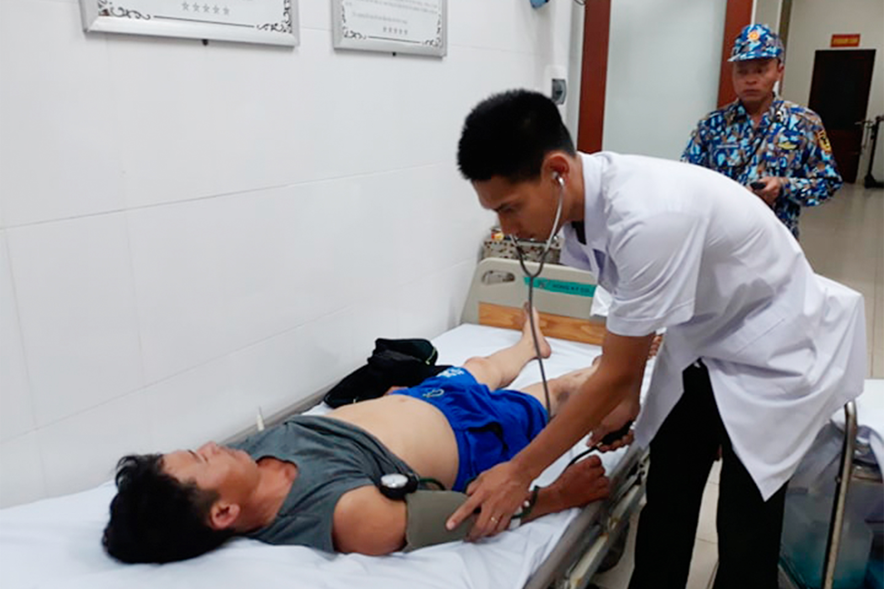 Bác sĩ Trung tâm Y tế thị trấn Trường Sa kiểm tra sức khỏe cho bệnh nhân Ngô Minh Sơn