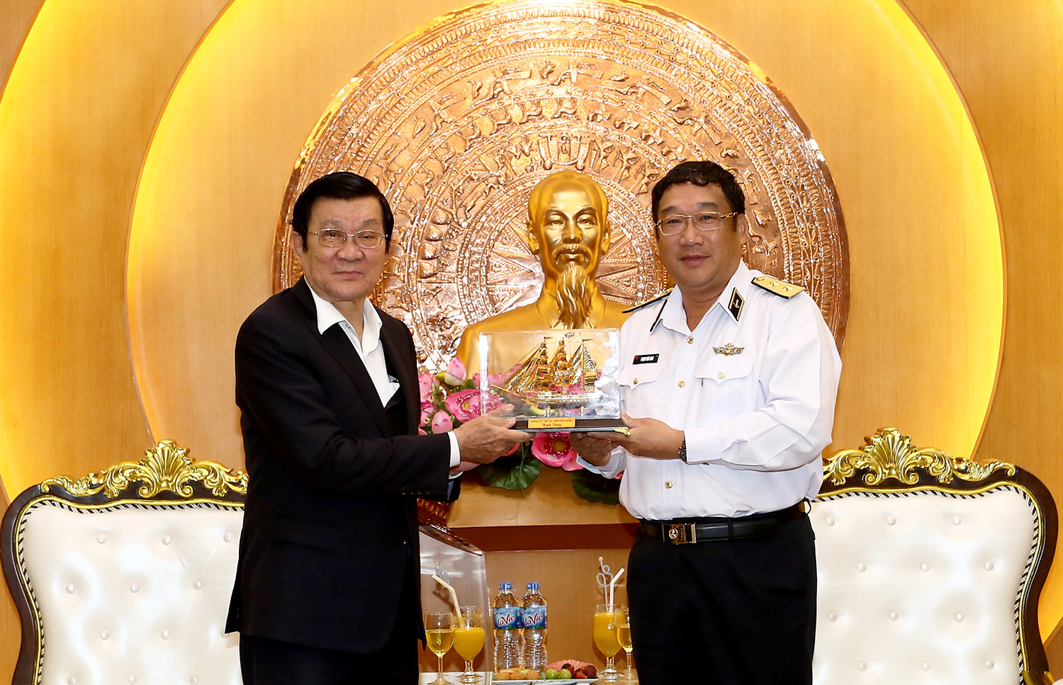 Tư lệnh Hải quân tặng nguyên Chủ tịch nước quà lưu niệm