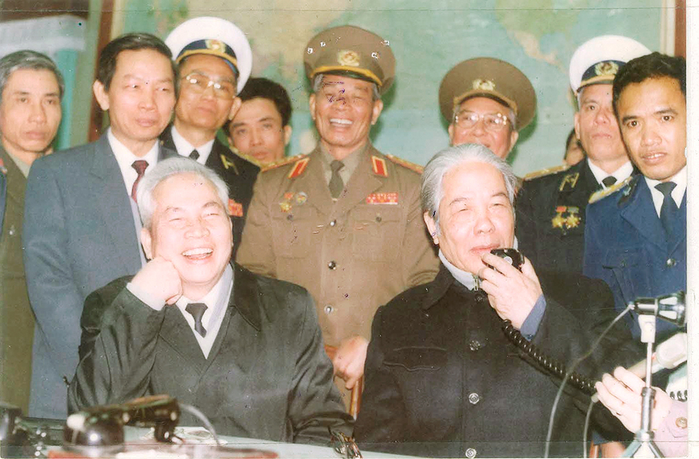 Tổng Bí thư Đỗ Mười chúc tết cán bộ, chiến sĩ trên quần đảo Trường Sa qua vô tuyến điện tại Sở chỉ huy Bộ Tư lệnh Hải quân ngày 19-1-1993. Ảnh TL