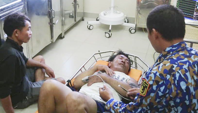 Trước đó, ngư dân Nô đang lao động trên tàu cá, do bất cẩn đã bị cây đá lạnh đè lên người gây chấn thương lồng ngực. Sau cấp cứu, anh Nô đã tỉnh táo, nhận thức tốt, huyết áp ổn định.