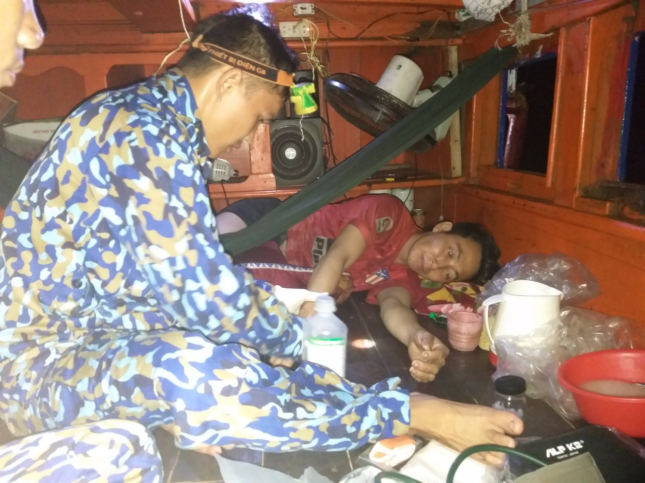 Y sỹ Nhà giàn băng, rửa vết thương và truyền dịch cho ngư dân ngay trên tàu cá