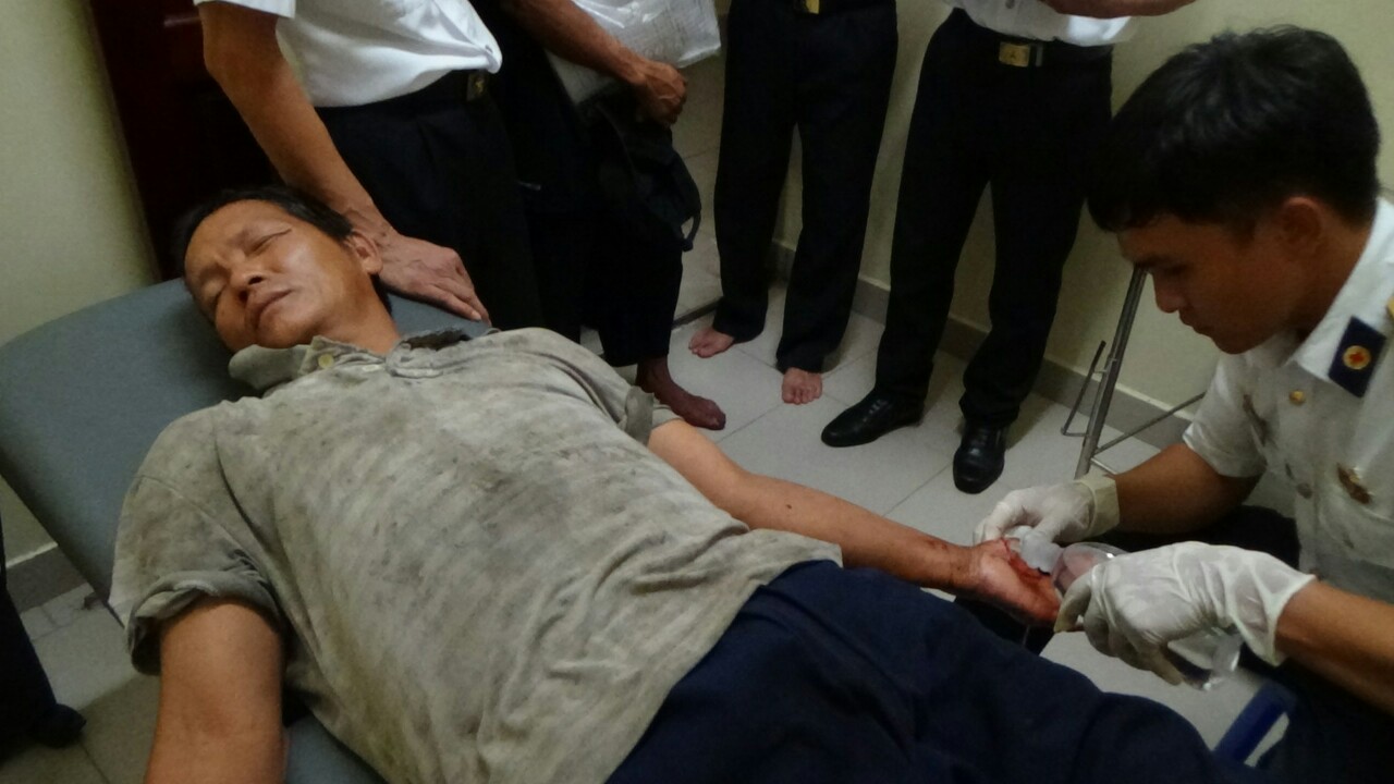 Trước đó, 14 giờ ngày 24-4, tàu cá QNg 95618 TS hành nghề câu mực tại vùng biển thềm lục địa phía Nam của Việt Nam. Trong lúc sóng, gió, ngư dân Nguyễn Văn Hoa dùng dao chặt dây đã chặt vào bàn tay trái làm đứt động mạch, mất nhiều máu.