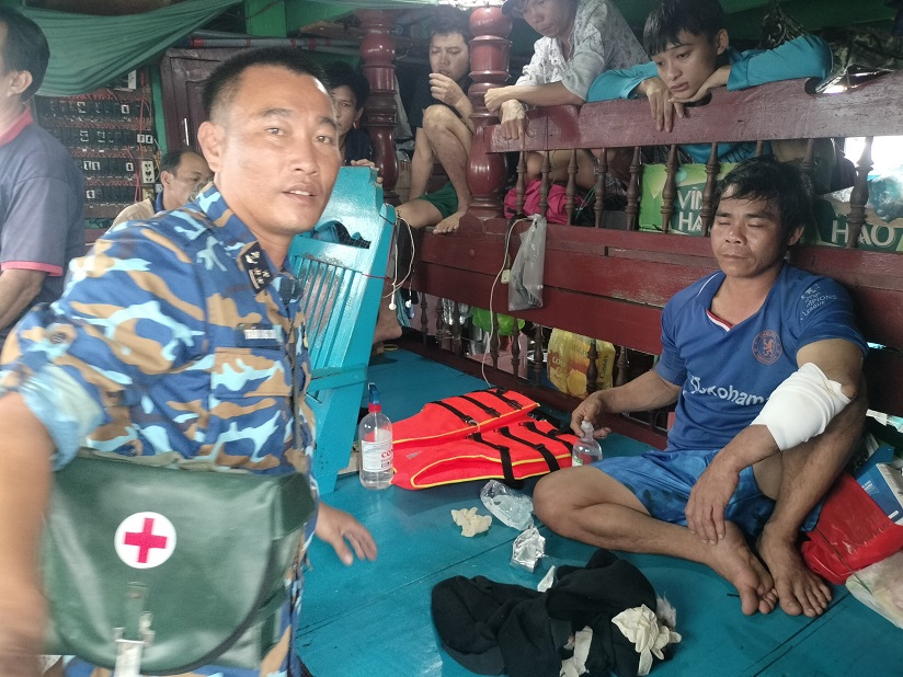 Ngư dân bị nạn là anh Hà Văn Hiếu, sinh năm 1983 bị tai nạn rách phần mềm 1/3 trên cách tay trái, dài 3cm, sâu 5cm, có tổn thương cơ, dây thần kinh.
