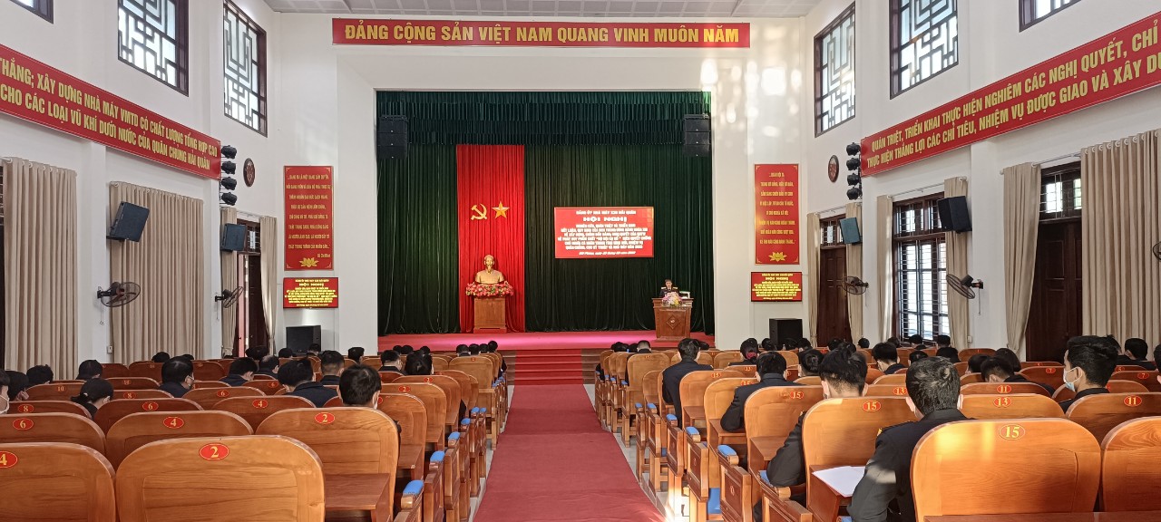 Tại hội nghị, đồng chí Bí thư Đảng ủy Nhà máy đã giới thiệu những nội dung cơ bản của Kết luận số 21 về đẩy mạnh xây dựng, chỉnh đốn Đảng và hệ thống chính trị, kiên quyết ngăn chặn, đẩy lùi, xử lý nghiêm cán bộ, đảng viên suy thoái về tư tưởng chính trị, đạo đức, lối sống, biểu hiện “tự diễn biến”, “tự chuyển hóa”; nội dung cơ bản của Quy định số 37 về những điều đảng viên không được làm; Nghị quyết số 847 của Quân ủy Trung ương về phát huy phẩm chất “Bộ đội Cụ Hồ”, kiên quyết chống chủ nghĩa cá nhân trong tình hình mới.