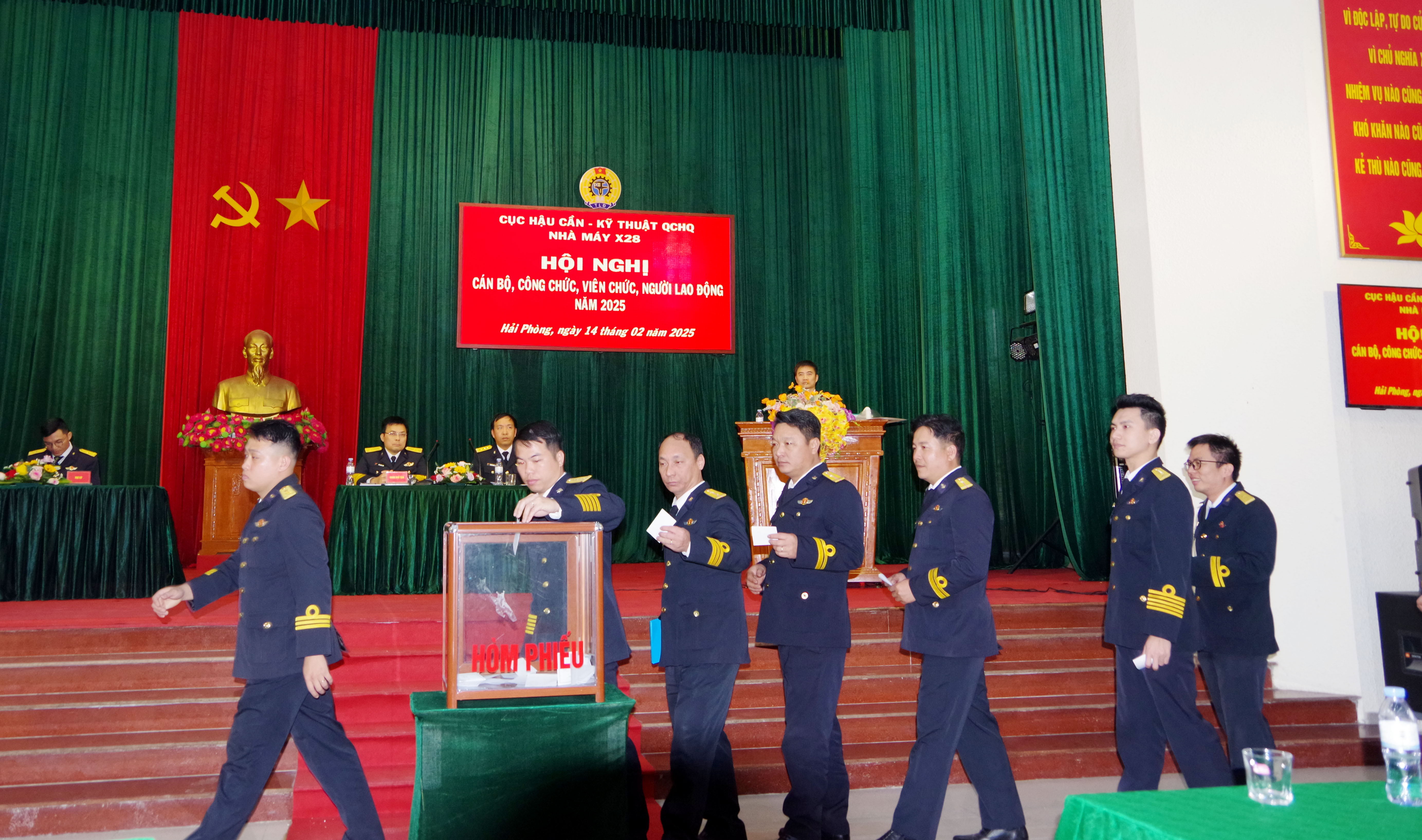 Chiều 14/2, tại Hải Phòng, Nhà máy X28, Cục Hậu cần – Kỹ thuật Hải quân tổ chức Hội nghị cán bộ, công chức, viên chức, người lao động năm 2025. Đại tá Bùi Ngọc Lâm, Giám đốc Nhà máy và Thượng tá Nguyễn Đức Long, Phó giám đốc, Chủ tịch Công đoàn cơ sở Nhà máy đồng chủ trì.