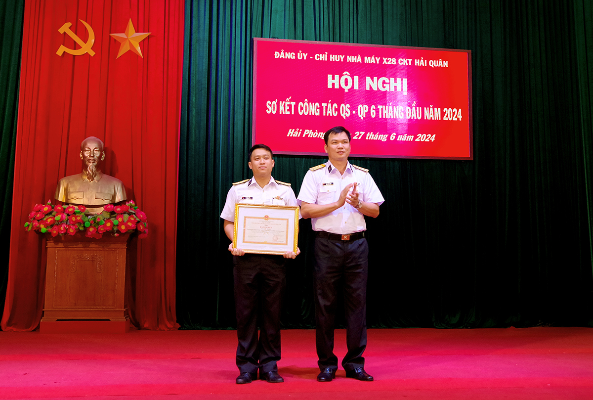 Tại hội nghị, Đại tá Lê Hoàng Việt đã trao Bằng khen của Tổng Tham mưu trưởng Quân đội nhân dân Việt Nam tặng một cá nhân có thành tích xuất sắc trong thực hiện nhiệm vụ diễu binh, diễu hành kỷ niệm 70 năm Chiến thắng Điện Biên Phủ. Thủ trưởng Nhà máy tặng Giấy khen các cá nhân có thành tích xuất sắc trong thực hiện nhiệm vụ bảo đảm kỹ thuật thủy lôi chiến đấu và ngư lôi bắn tập năm 2024.
