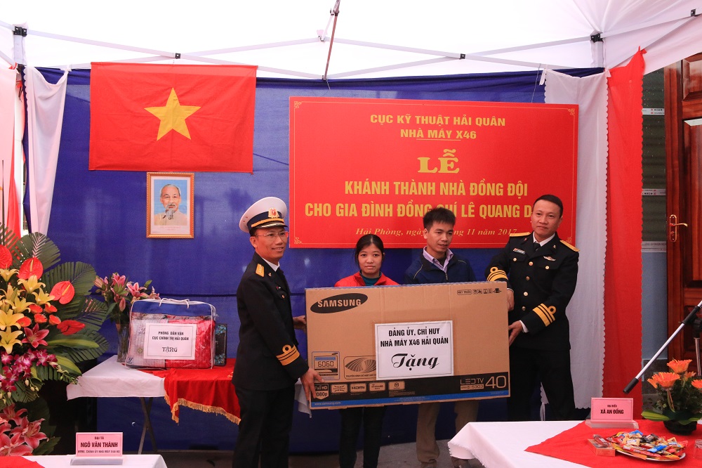 Tại buổi lễ, Phòng Dân vận, Cục Chính trị Hải quân; Nhà máy X46 và chính quyền địa phương đã tặng gia đình đồng chí Duyên nhiều phần quà thiết thực trong sinh hoạt.