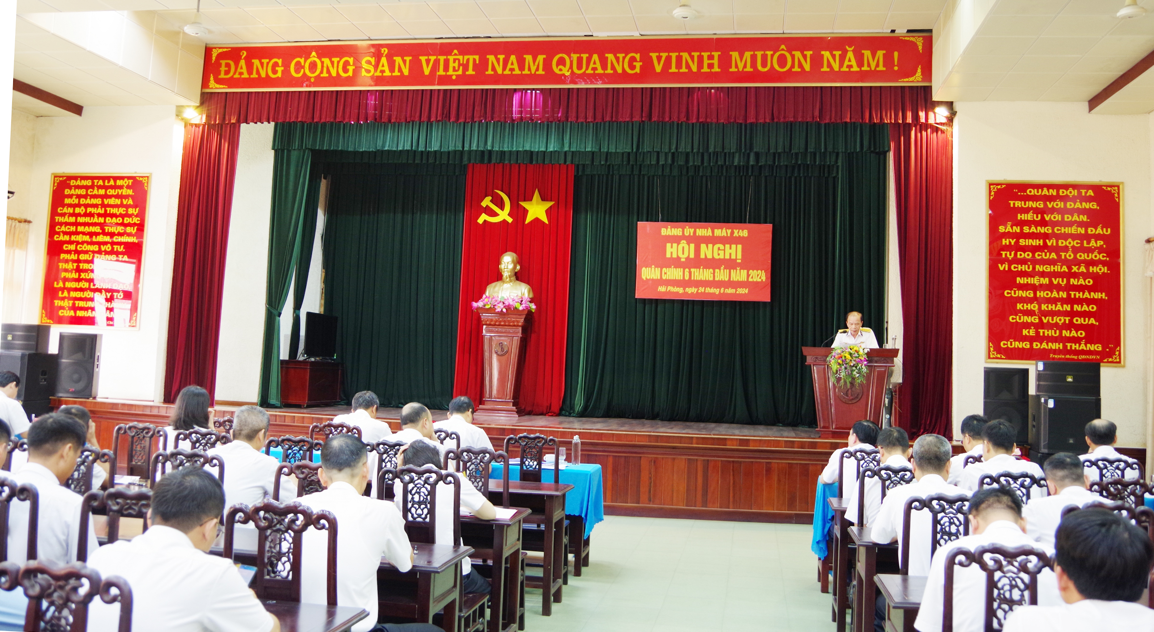 Chiều 24/6, tại TP. Hải Phòng, Nhà máy X46, Cục Kỹ thuật Hải quân tổ chức Hội nghị Quân chính 6 tháng đầu năm 2024. Đại tá Nguyễn Quốc Đông, Giám đốc Nhà máy chủ trì. Đại tá Cù Đức Lâm, Bí thư Đảng ủy, Chính ủy Nhà máy quán triệt Nghị quyết lãnh đạo thực hiện nhiệm vụ 6 tháng cuối năm.