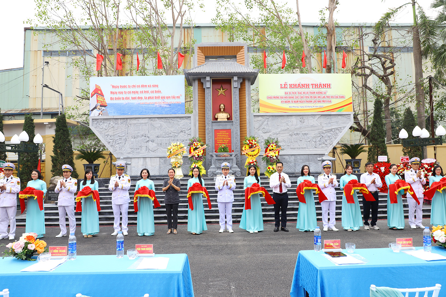 Các đại biểu cắt băng khánh thành Bia di tích “Bác Hồ về thăm Xưởng 46”