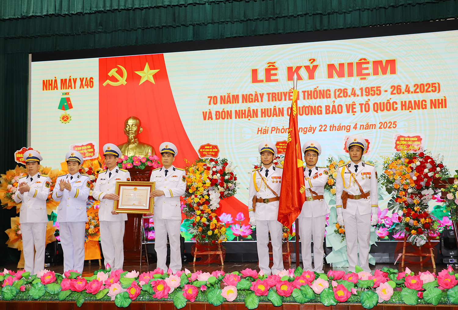 Tại buổi lễ, thừa ủy quyền của Chủ tịch nước, Phó Đô đốc Trần Thanh Nghiêm đã trao tặng Nhà máy X46 Huân chương Bảo vệ Tổ quốc hạng Nhì.