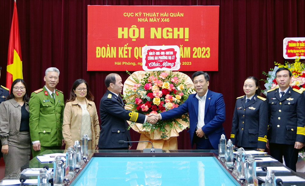 Lãnh đạo phường Hạ Lý tặng hoa chúc mừng Nhà máy X46 nhân dịp kỷ niệm Ngày thành lập Quân đội nhân dân Việt Nam