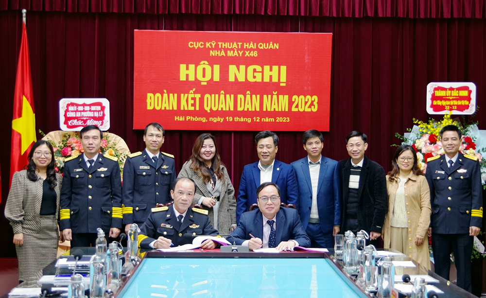 Đại diện lãnh đạo, chỉ huy Nhà máy X46, phường Hạ Lý và Ban Tuyên giáo Thành ủy Bắc Ninh đã ký kết chương trình phối hợp hoạt động năm 2024.