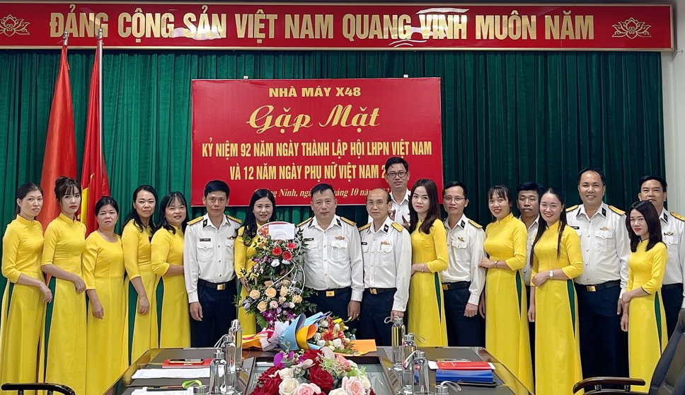 Chiều 19/10, tại Quảng Ninh, Nhà máy X48, Cục Kỹ thuật Hải quân tổ chức gặp mặt cán bộ, hội viên phụ nữ nhân dịp kỷ niệm 92 năm Ngày thành lập Hội Liên hiệp phụ nữ Việt Nam. Tham dự có Thượng tá Nguyễn Huy Hùng, Bí thư Đảng ủy, Chính ủy Nhà máy.