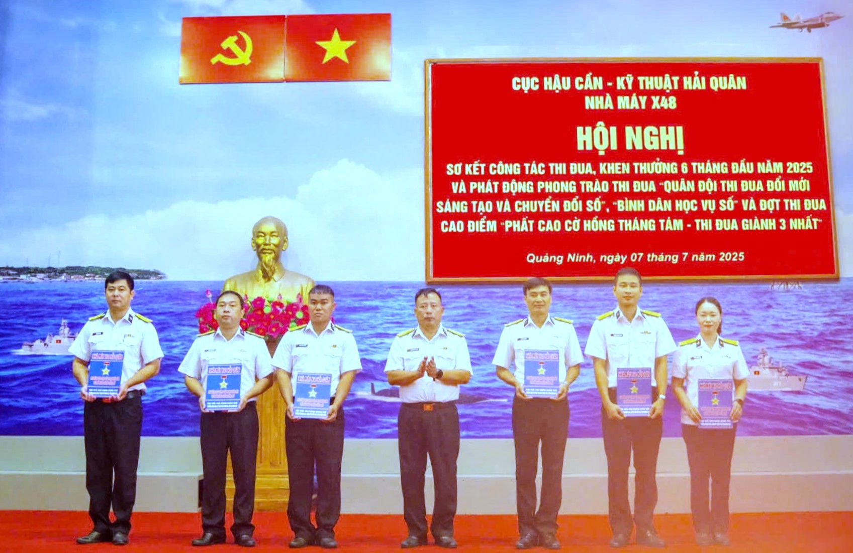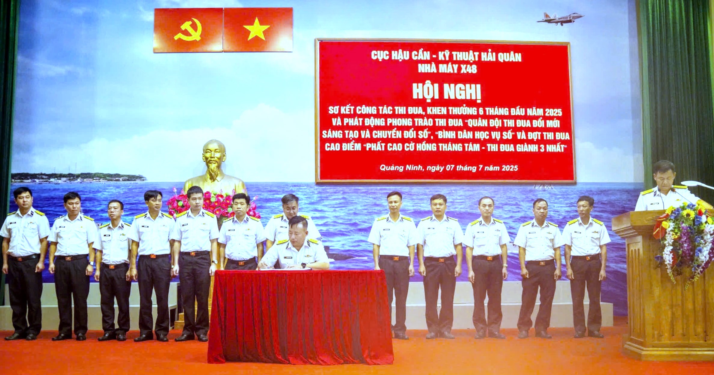 Sáng 7/7, tại tỉnh Quảng Ninh, Nhà máy X48, Cục Hậu cần - Kỹ thuật Hải quân tổ chức sơ kết công tác thi đua, khen thưởng 6 tháng đầu năm 2025 và phát động phong trào thi đua “Quân đội thi đua đổi mới sáng tạo, chuyển đổi số” và “Bình dân học vụ số”; đợt thi đua cao điểm “Phất cao cờ hồng tháng Tám - Thi đua giành 3 nhất”. Thượng tá Nguyễn Huy Hùng, Bí thư Đảng uỷ, Chính ủy, Chủ tịch Hội đồng Thi đua - Khen thưởng Nhà máy X48 chủ trì.
