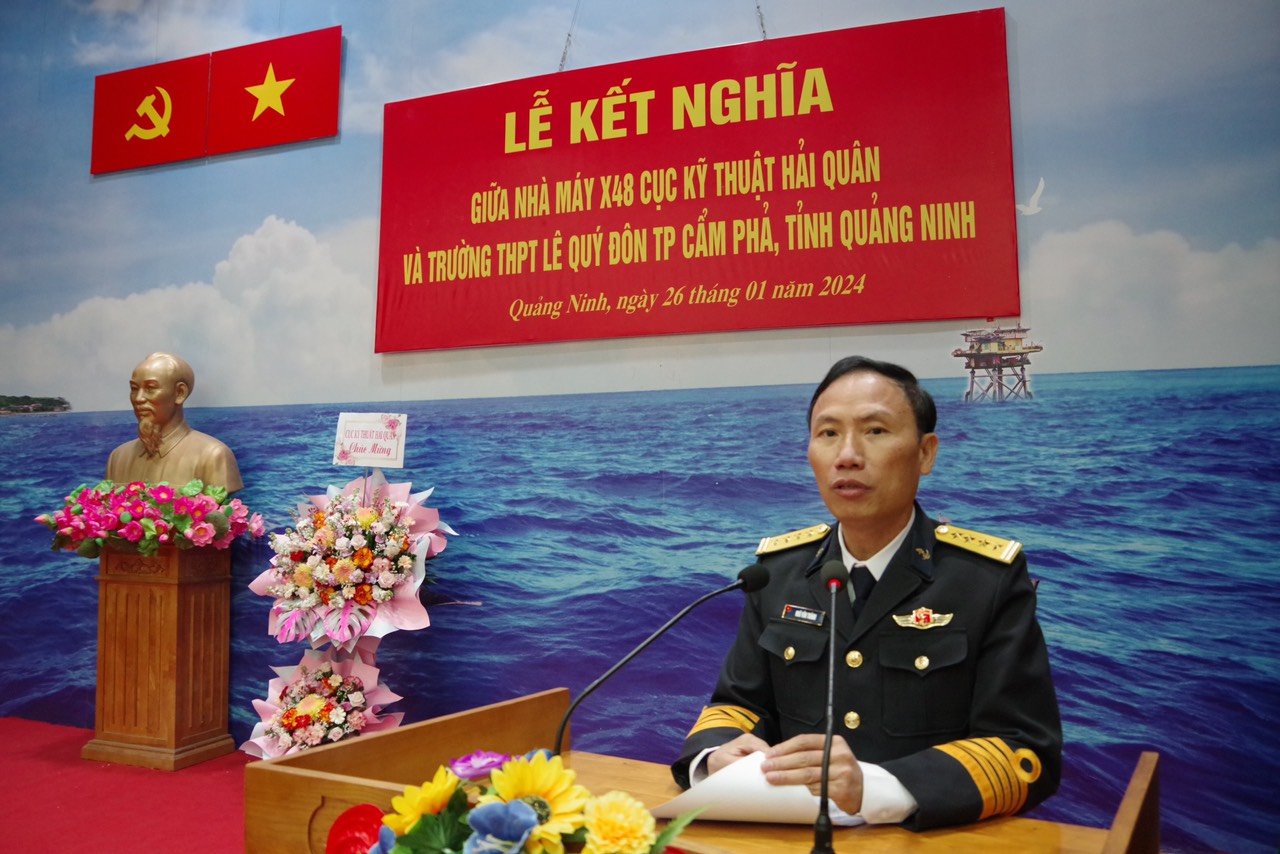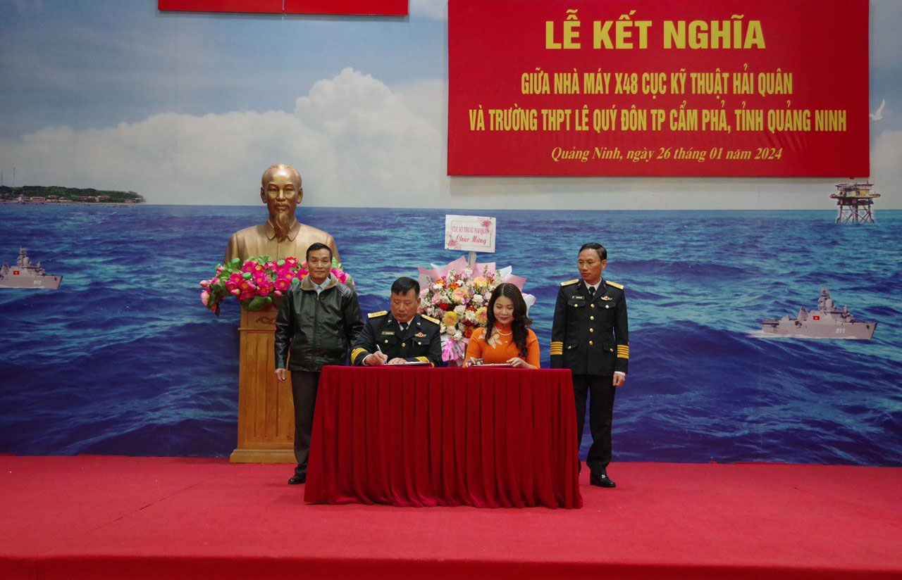 Chiều 26/1, tại TP. Cẩm Phả, tỉnh Quảng Ninh, Nhà máy X48, Cục Kỹ thuật Hải quân và Trường THPT Lê Quý Đôn (TP Cẩm Phả) tổ chức lễ kết nghĩa năm 2024. Tới dự có Đại tá Ngô Văn Thành, Bí thư Đảng ủy, Chính ủy Cục Kỹ thuật; đại biểu cấp ủy, chính quyền địa phương phường Quang Hanh (TP. Cẩm Phả) và các đơn vị đóng quân trên địa bàn.