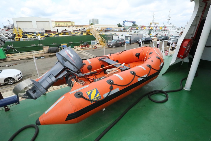 Tàu được trang bị 1 xuồng cao tốc dạng tự phục hồi cân bằng dài 9 m, 1 xuồng cao su cơ động đế cứng, 6 phao bè cứu sinh tự thổi, thiết bị thông tin liên lạc theo tiêu chuẩn quốc tế GMDSS A3 và sẵn sàng tiếp cận máy bay trực thăng để phục vụ cứu nạn. Tàu cũng được trang bị các thiết bị y tế hiện đại để có thể cấp cứu ban đầu cho nạn nhân trên biển.