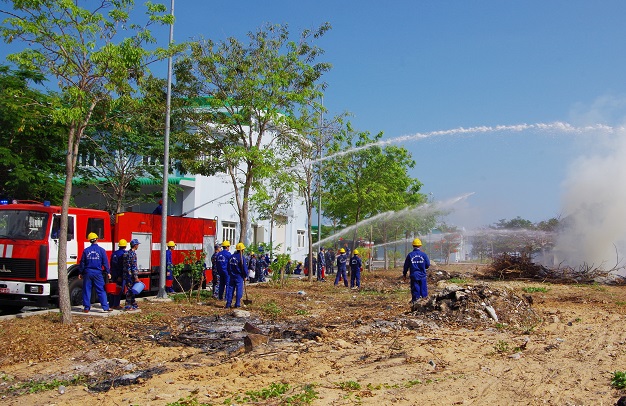 Buổi luyện tập giúp cán bộ, nhân viên, chiến sĩ Nhà máy có thêm kinh nghiệm xử lý tốt khi có tình huống xảy ra, nhất trong điều kiện thời tiết nắng nóng trên diện rộng.