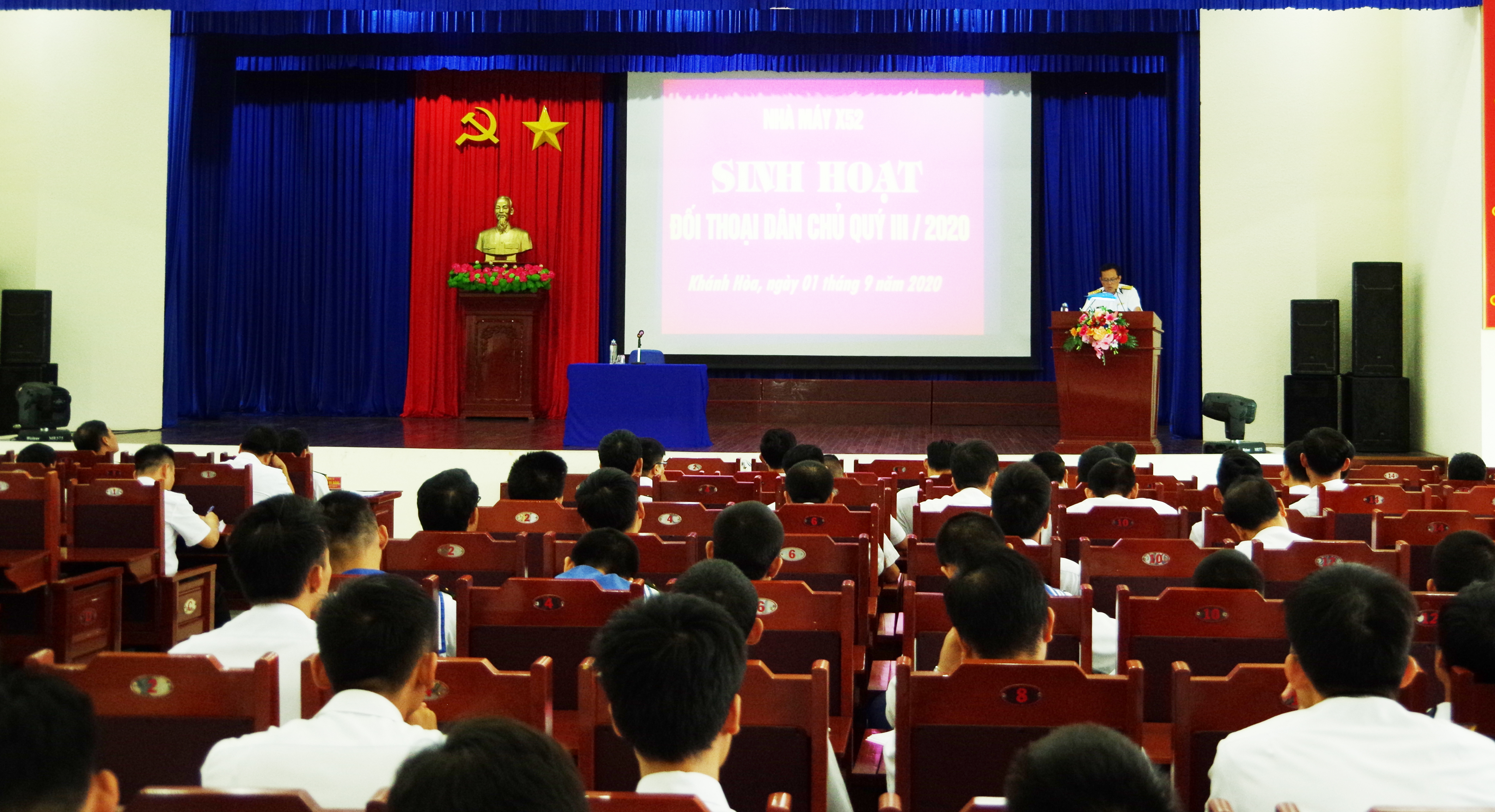 Sáng 1-9, tại TP. Cam Ranh, tỉnh Khánh Hòa, Đảng ủy, Ban Giám đốc Nhà máy X52 tổ chức đối thoại dân chủ quý III với cán bộ, nhân viên, chiến sĩ Nhà máy. Đại tá Phạm Tiến Quân, Giám đốc Nhà máy chủ trì.