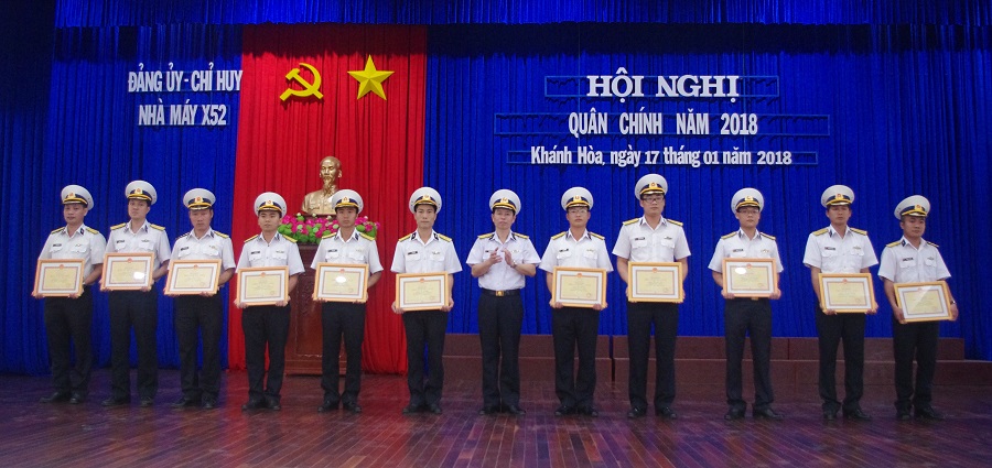Năm 2017, Nhà máy X52 đã thực hiện tốt nhiệm vụ chính trị trọng tâm; làm tốt công tác giám sát hiện trường thi công các gói thầu; tham mưu điều chỉnh thiết kế, lắp đặt thiết bị; phối hợp chặt chẽ với các cơ quan chức năng thực hiện tốt công tác nghiệm thu, tiếp nhận đưa vào sử dụng an toàn, hiệu quả các trang thiết bị như: Hệ thống sàn nâng hạ, xe dịch chuyển tàu, hệ thống cấp khí thấp áp...