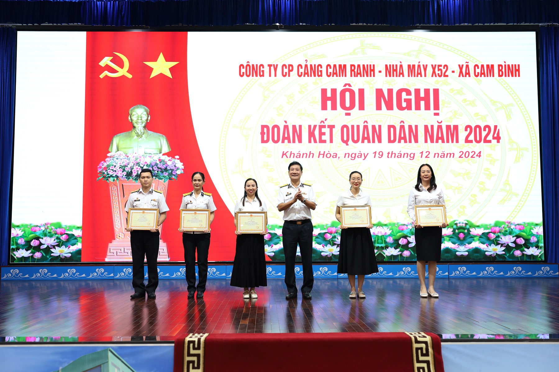 Chiều 19/12, tại TP. Cam Ranh, tỉnh Khánh Hòa, Nhà máy X52, Cục Hậu cần - Kỹ thuật Hải quân tổ chức Hội nghị đoàn kết quân dân năm 2024. Đại tá Phạm Bá Bằng, Bí thư Đảng ủy, Chính ủy Nhà máy chủ trì; tham dự có các đồng chí trong Đảng ủy, Ban Giám đốc Nhà máy và đại diện lãnh đạo 2 đơn vị kết nghĩa là xã Cam Bình và Công ty cổ phần cảng Cam Ranh.