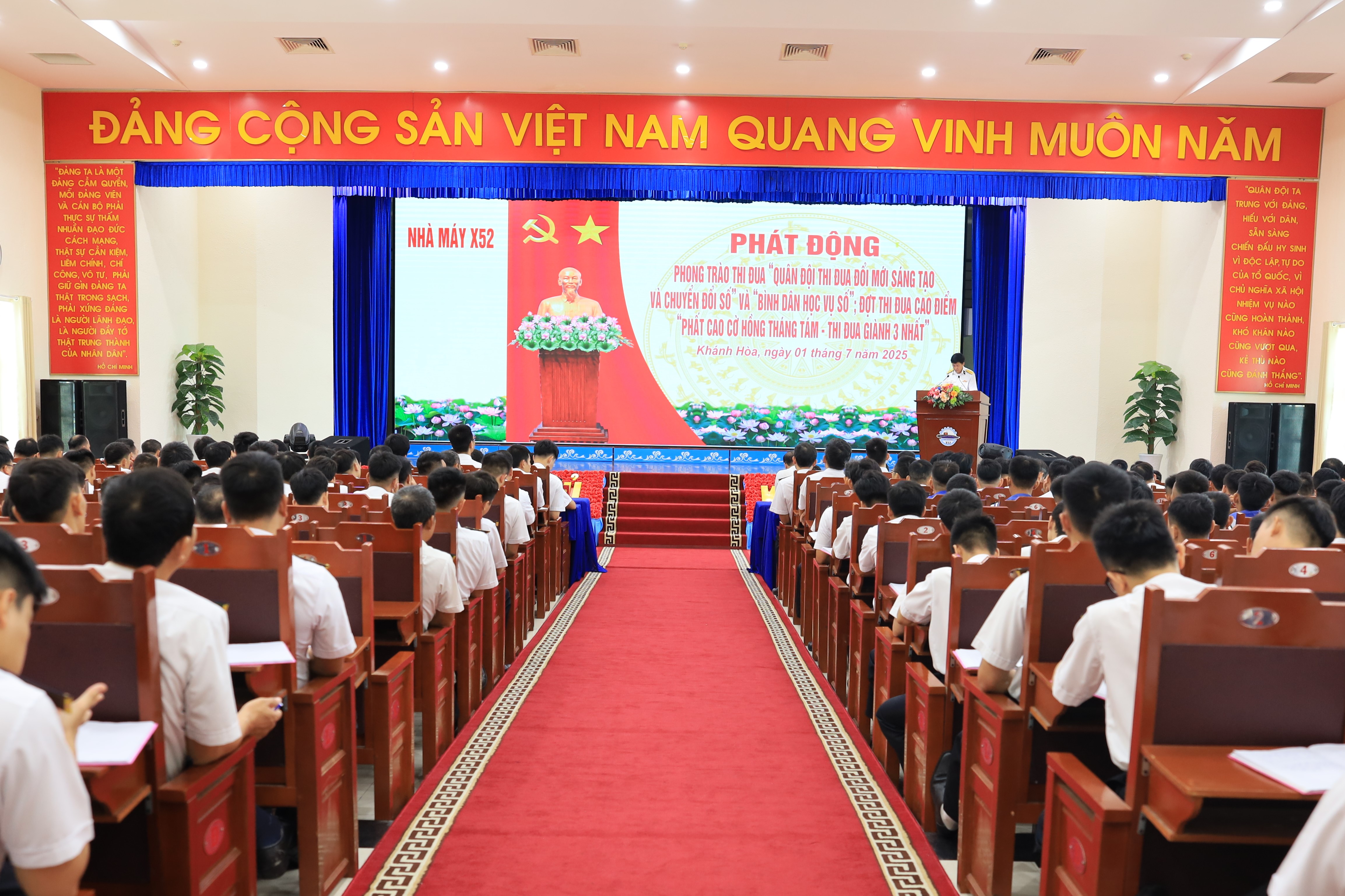 Sáng 1/7, tại Khánh Hòa, Nhà máy X52, Cục Hậu cần-Kỹ thuật Hải quân tổ chức Hội nghị đối thoại dân chủ Quý II năm 2025 và phát động phong trào thi đua “Quân đội thi đua đổi mới sáng tạo, chuyển đổi số” và “Bình dân học vụ số”; đợt thi đua cao điểm “Phất cao cờ hồng tháng Tám - Thi đua giành 3 nhất”.
