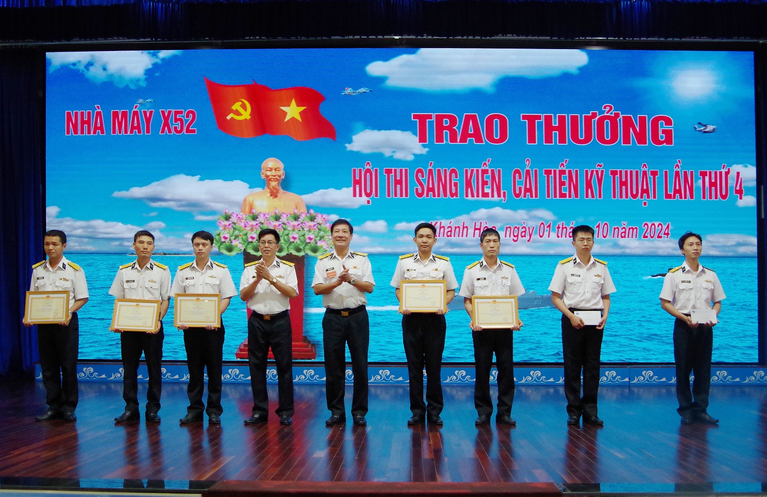 Đại tá Huỳnh Xuân Sinh, Giám đốc Nhà máy X52 trao thưởng cho các đề tài đạt giải cao