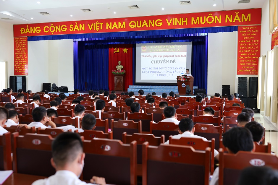 Ngày 6/5, tại TP. Cam Ranh, tỉnh Khánh Hòa, Nhà máy X52, Cục Kỹ thuật Hải quân phối hợp Tòa án Quân sự khu vực Quân chủng Hải quân tổ chức phổ biến, giáo dục pháp luật năm 2022 cho cán bộ, nhân viên, chiến sĩ Nhà máy.