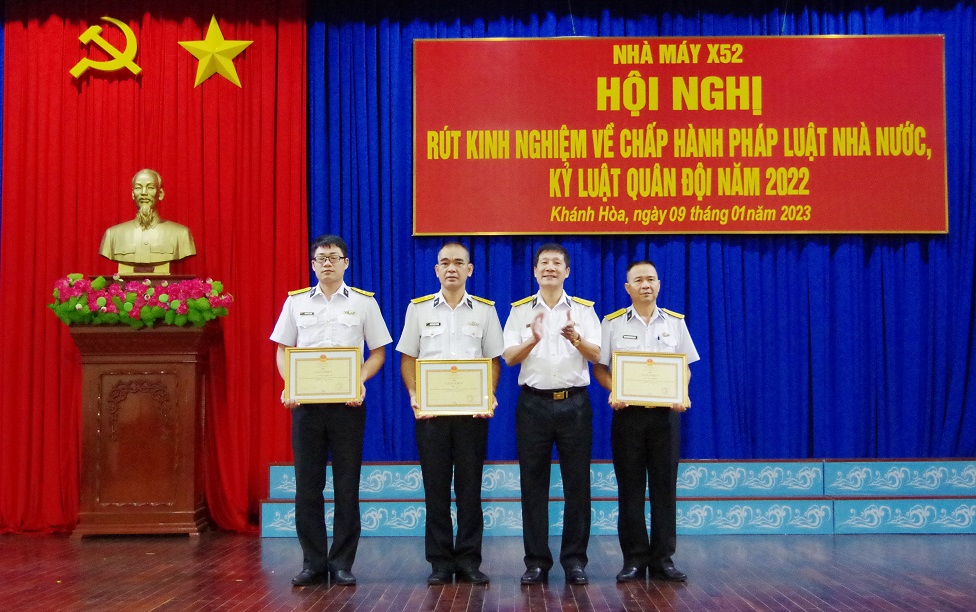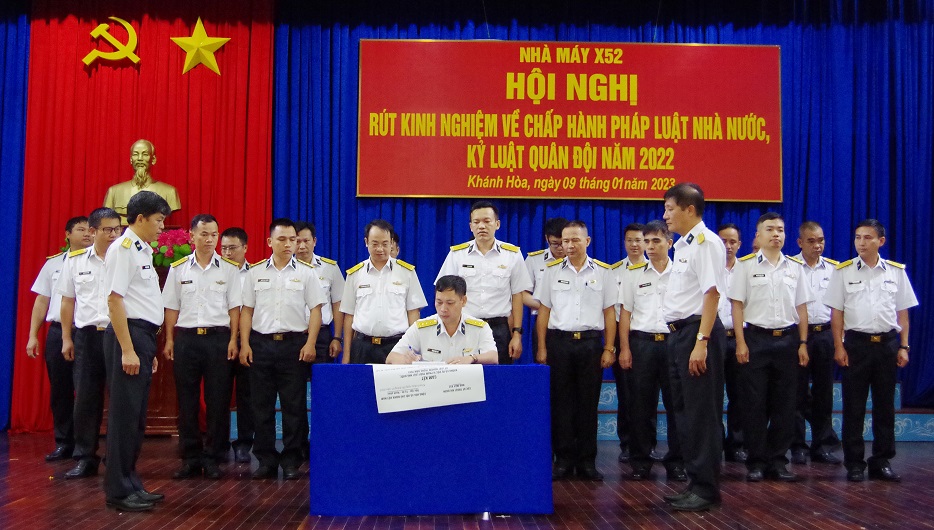 Ngày 9/1, tại TP. Cam Ranh, tỉnh Khánh Hòa, Nhà máy X52, Cục Kỹ thuật Hải quân tổ chức Hội nghị rút kinh nghiệm về chấp hành pháp luật Nhà nước, kỷ luật Quân đội năm 2022. Đại tá Huỳnh Xuân Sinh, Giám đốc Nhà máy chủ trì.