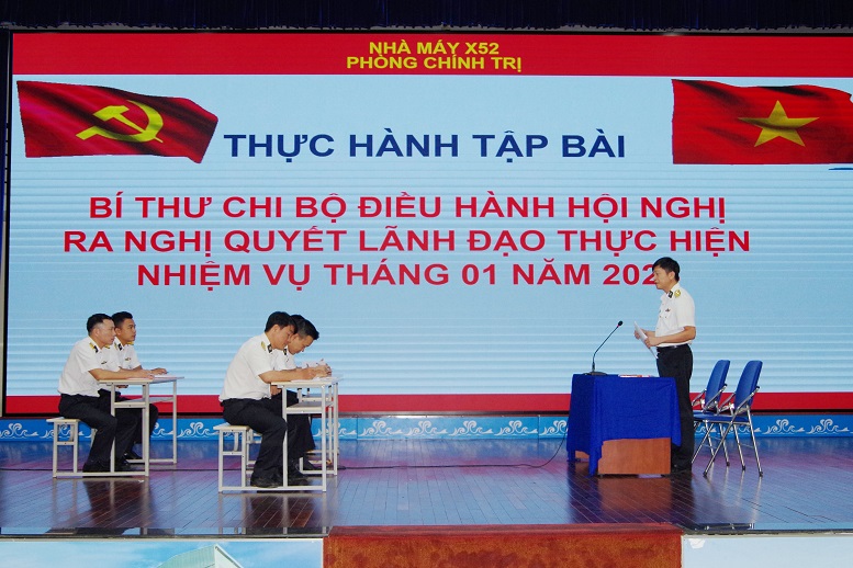 Đội mẫu thực hành tập bài điều hành ra nghị quyết lãnh đạo thực hiện nhiệm vụ tháng