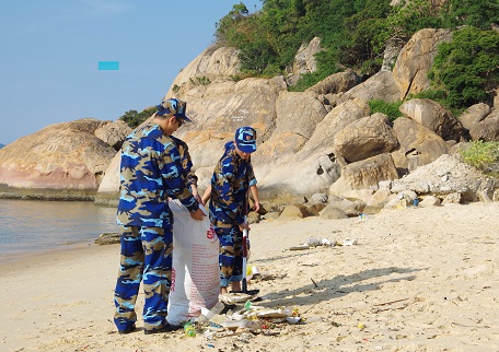 Cán bộ, đoàn viên thu gom rác thải bờ biển khu vực Nhà máy quản lý