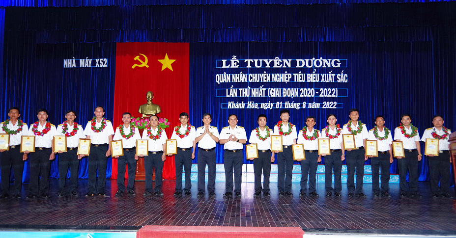 Tối 1/8, tại TP. Cam Ranh, tỉnh Khánh Hòa, Nhà máy X52, Cục Kỹ thuật Hải quân tổ chức Lễ tuyên dương quân nhân chuyên nghiệp (QNCN) tiêu biểu xuất sắc lần thứ I giai đoạn 2020-2022. Đại tá Phạm Tiến Quân, Giám đốc Nhà máy chủ trì.