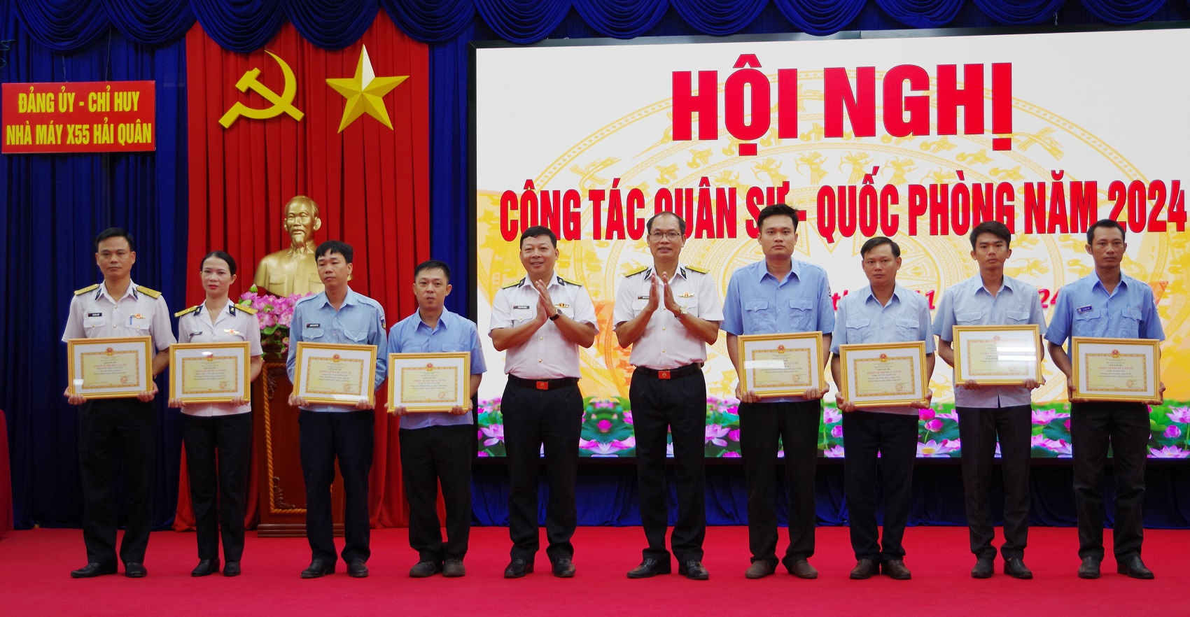 Năm 2024, Đảng ủy, Ban giám đốc Nhà máy X55 luôn đoàn kết, đề cao trách nhiệm, bám sát thực tiễn, lãnh đạo, chỉ đạo toàn đơn vị hoàn thành tốt nội dung, chỉ tiêu quân sự - quốc phòng; bảo đảm việc làm, thu nhập ổn định cho người lao động.