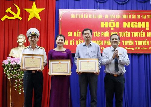 Chiều 26-2, tại TP. Cần Thơ, Nhà máy X55 Cục Kỹ thuật Hải quân và Ban Tuyên giáo Tỉnh ủy Vĩnh Long, Ban Tuyên giáo Thành ủy Cần Thơ đã phối hợp tổ chức Hội nghị sơ kết công tác tuyên truyển biển, đảo năm 2018 và ký kết kế hoạch phối hợp tuyên truyển biển, đảo năm 2019.