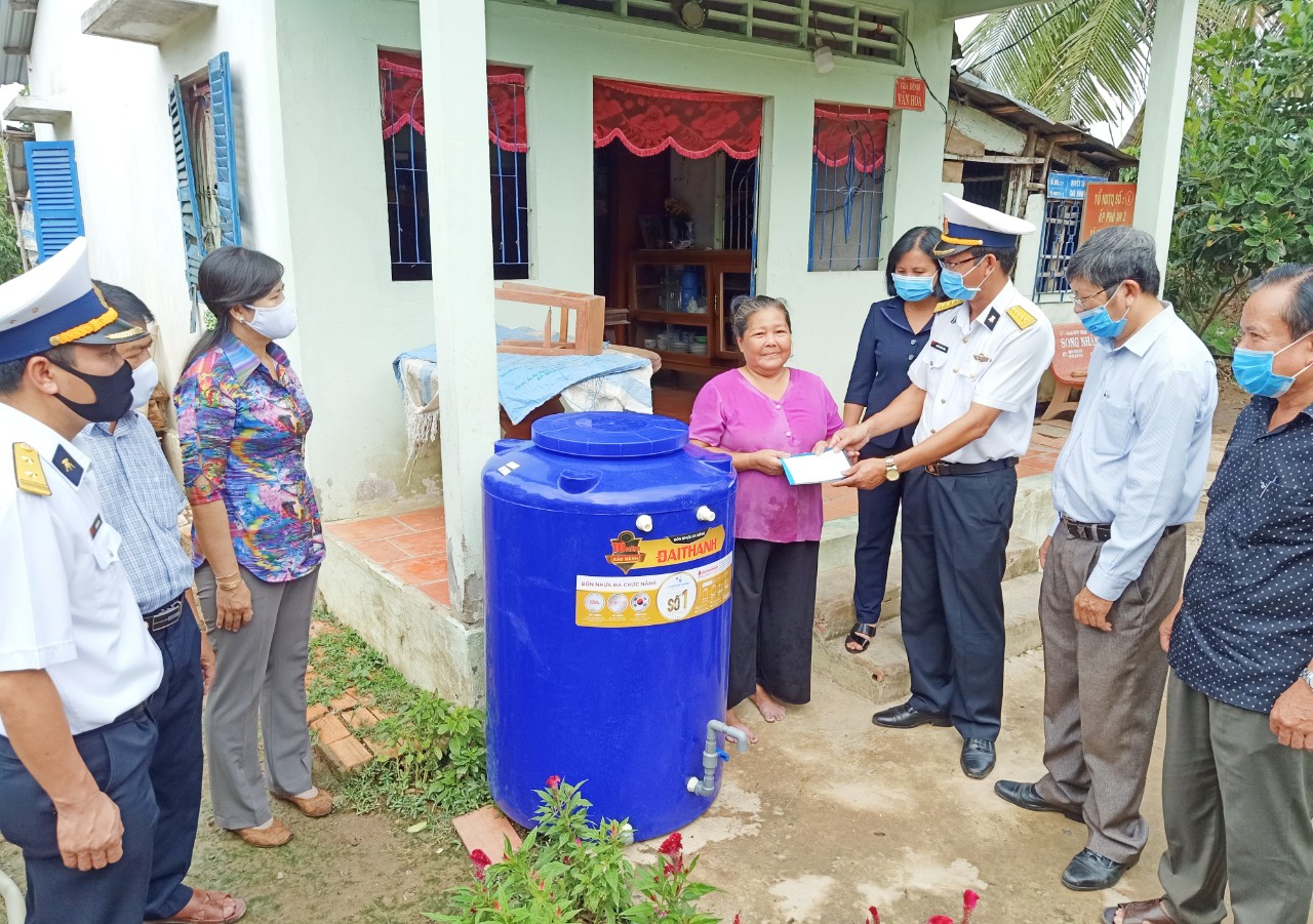 Đoàn công tác đã tặng 10 hộ gia đình chính sách, người có công với cách mạng xã Hòa Bình Phước, mỗi hộ một thùng nhựa chứa nước (loại 500 lít) và 1 triệu đồng. Số quà và tiền được trao đến từng hộ gia đình.