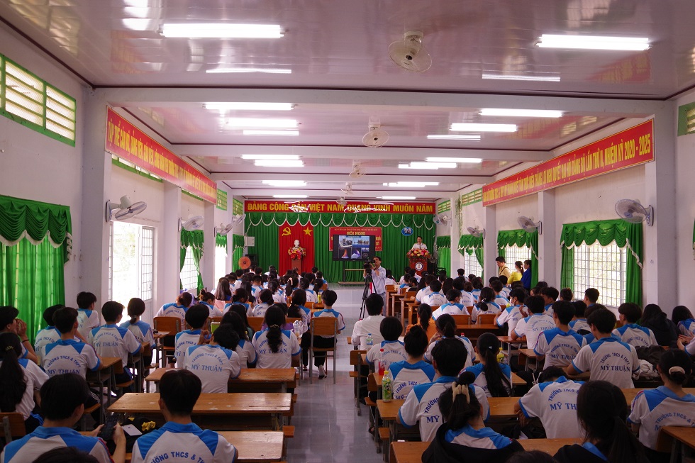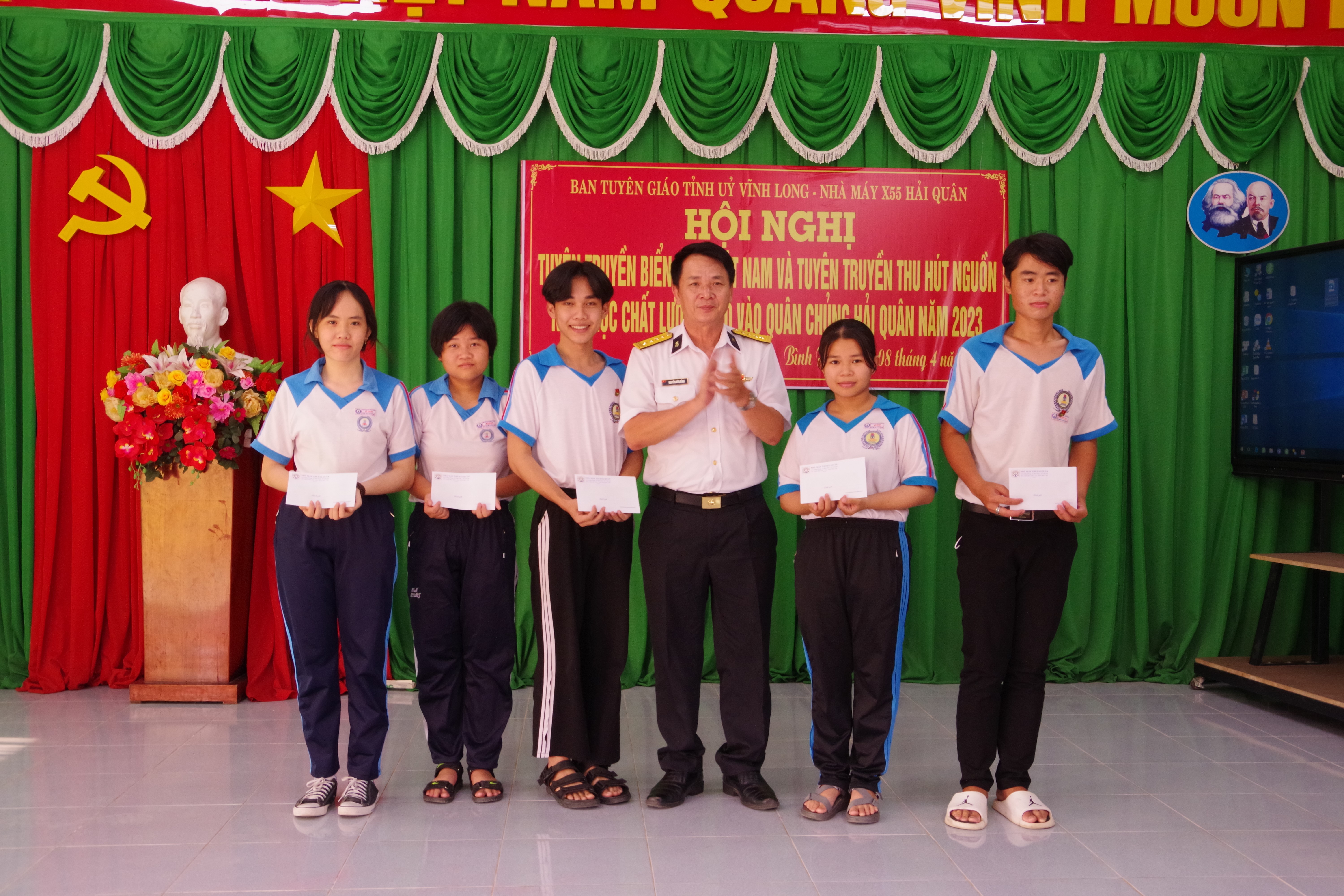 Ngày 8/4, Nhà máy X55 Hải quân phối hợp với Ban Tuyên giáo Tỉnh ủy Vĩnh Long tổ chức thông tin về biển, đảo cho hơn 700 học sinh một số trường THPT trên địa bàn huyện Bình Tân, tỉnh Vĩnh Long.