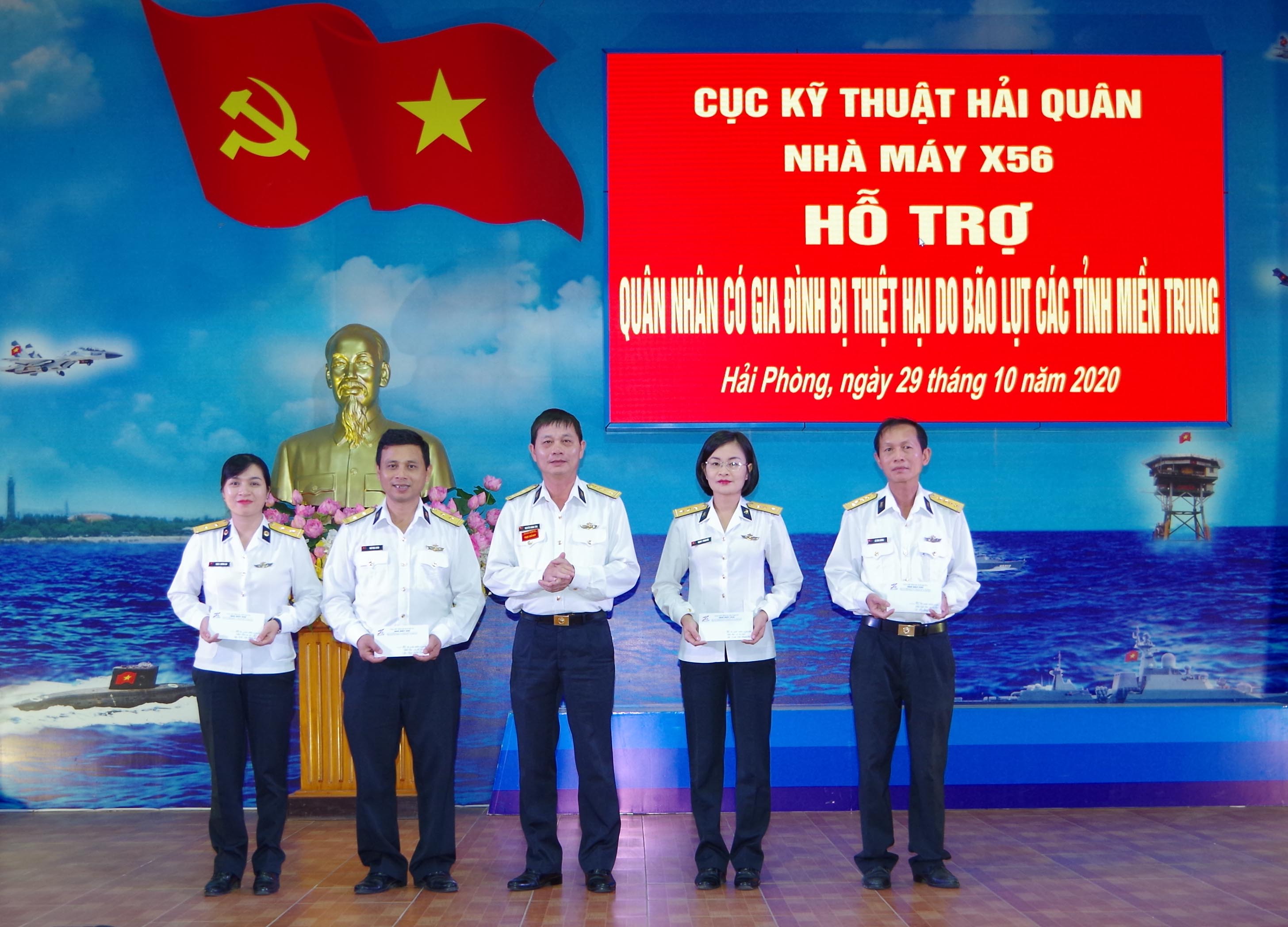 Ngày 29-10, tại Hải Phòng, Nhà máy X56, Cục Kỹ thuật Hải quân đã trao quà hỗ trợ các gia đình quân nhân của Nhà máy bị thiệt hại do lũ lụt gây ra ở các tỉnh miền Trung.