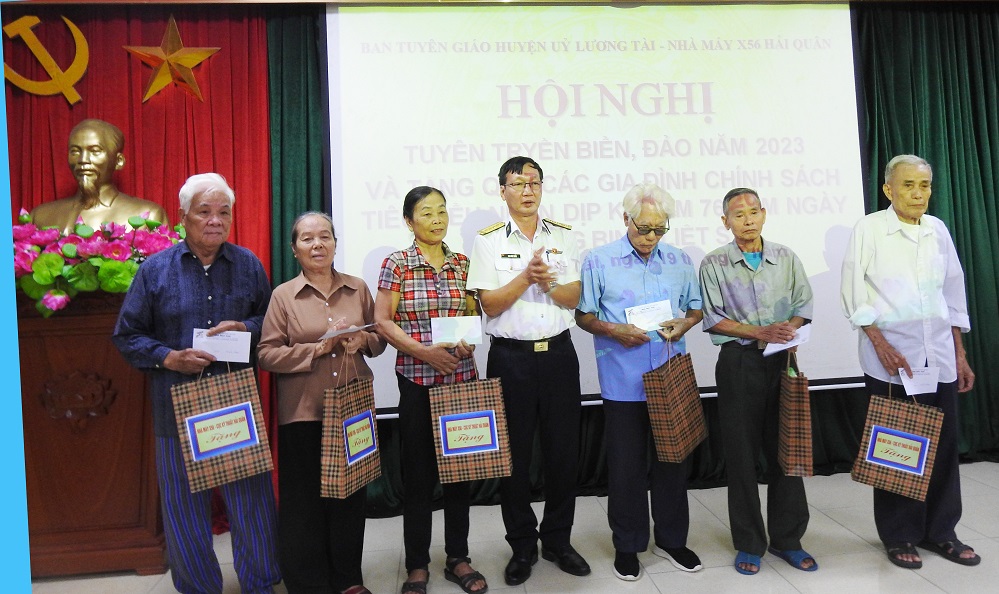 Nhân dịp này, Nhà máy X56 đã thăm hỏi, tặng quà 10 gia đình chính sách trên địa bàn huyện có hoàn cảnh đặc biệt khó khăn với số tiền trên 10 triệu đồng.