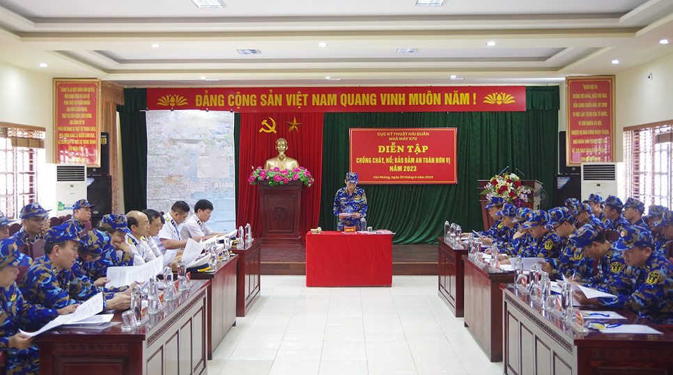 Chiều 20/9, tại TP. Hải Phòng, Nhà máy X70, Cục Kỹ thuật Hải quân tổ chức diễn tập chống cháy nổ trên bản đồ có một phần thực binh năm 2023. Thượng tá Trần Thế Tài, Giám đốc Nhà máy chủ trì.