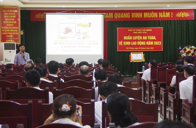 Chiều 5/5, tại Hải Phòng, Nhà máy X70, Cục Kỹ thuật Hải quân phối hợp với Trường Cao đẳng Hàng Hải (Hải Phòng) tổ chức huấn luyện an toàn, vệ sinh lao động năm 2023 cho hơn 100 cán bộ, công nhân viên trong toàn Nhà máy.