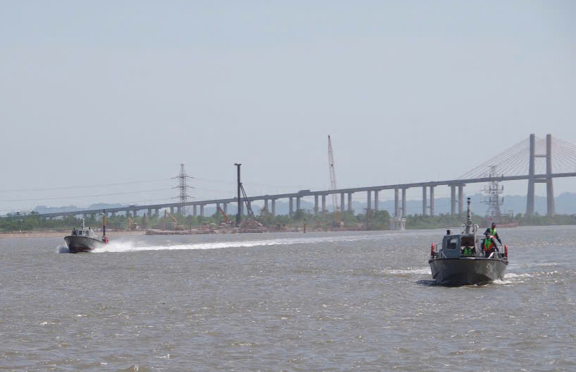 Xuồng nghiệm thu thực tế trên sông