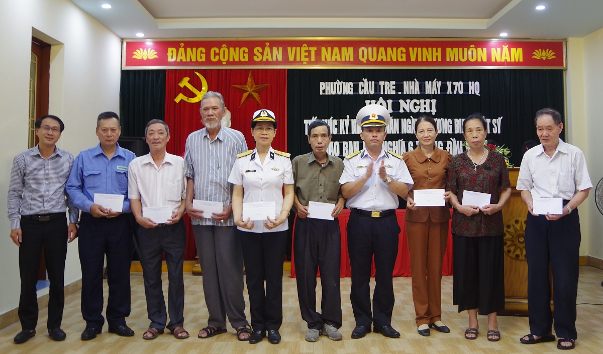 Cũng nhân dịp này, Nhà máy X70 phối hợp với phường Cầu Tre, quận Ngô Quyền và phường Đông Hải 1, quận Hải An tổ chức tuyên truyền biển, đảo và trao tặng 25 phần quà cho các gia đình chính sách, tặng quà mẹ Việt Nam Anh hùng với tổng số tiền 15 triệu đồng.