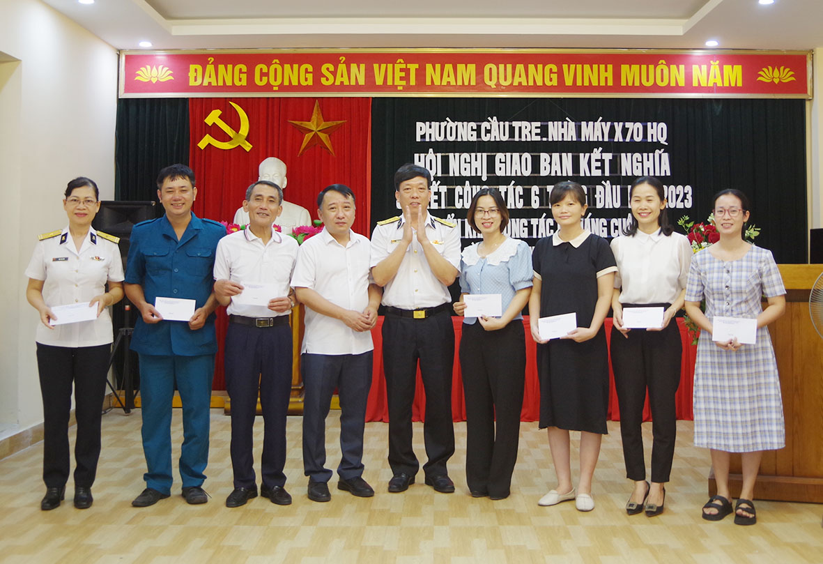 Nhà máy X70 phối hợp với phường Cầu Tre tổ chức Hội nghị giao ban kết nghĩa sơ kết công tác 6 tháng đầu năm 2023 và triển khai phương hướng 6 tháng cuối năm. Thượng tá Phạm Quang Hanh, Bí thư Đảng ủy, Chính ủy Nhà máy và đồng chí Bùi Kim Anh, Bí thư Đảng ủy, Chủ tịch HĐND phường Cầu Tre đồng chủ trì hội nghị.