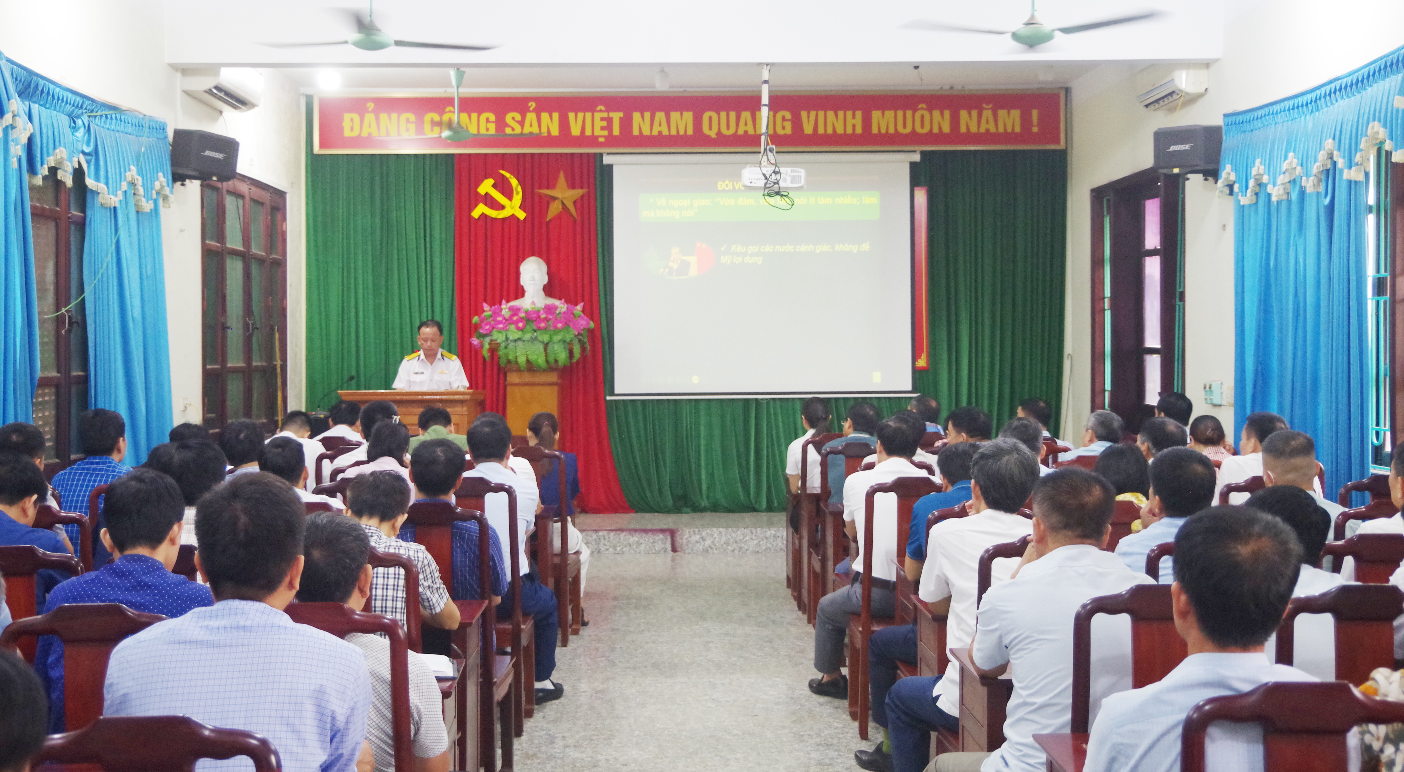Thượng tá Lê Đình Phi, Bí thư Đảng uỷ, Chính ủy Nhà máy X70 đã thông tin về vị trí, vai trò của biển, đảo trong sự nghiệp xây dựng và bảo vệ Tổ quốc; kết quả đấu tranh bảo vệ chủ quyền biển, đảo của Hải quân Nhân dân Việt Nam; quan điểm, chủ trương của Đảng, Nhà nước ta trong đấu tranh bảo vệ chủ quyền biển, đảo trong tình hình mới.