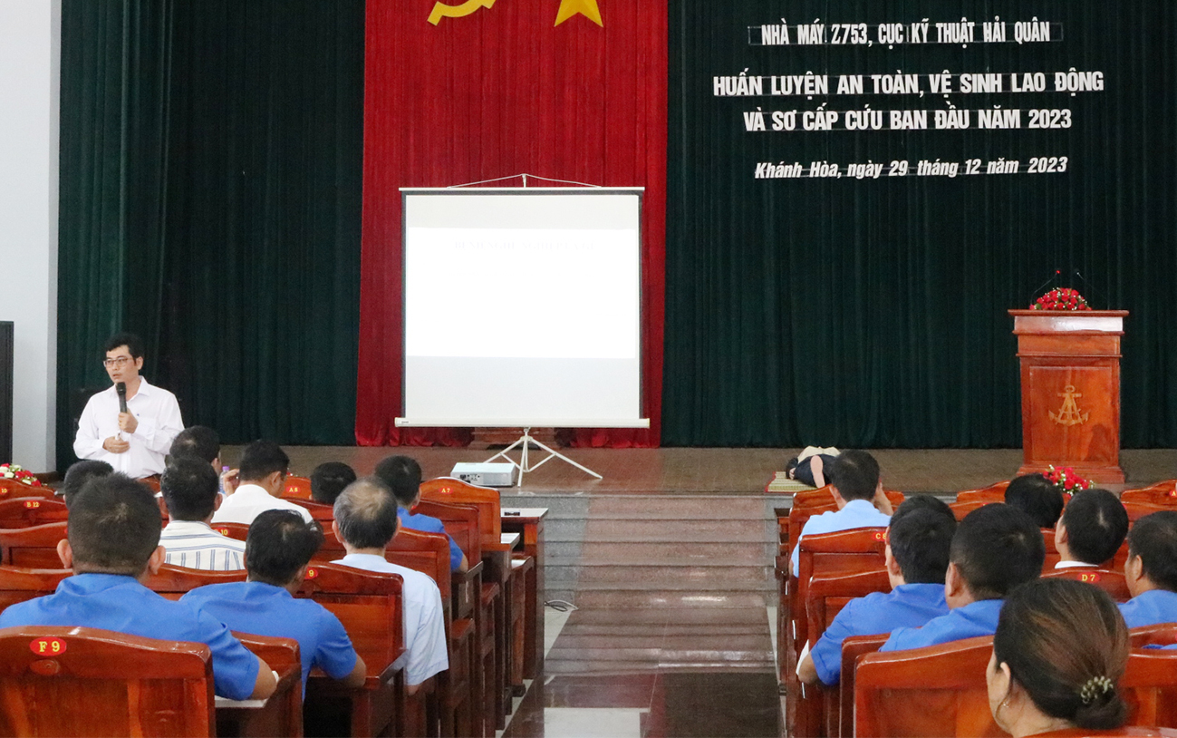 Ngày 29/12, tại TP. Nha Trang, tỉnh Khánh Hòa, Công ty TNHH MTV Hải Khánh (Nhà máy Z753), Cục Kỹ thuật Hải quân phối hợp với Công ty Cổ phần đào tạo Greenlines Việt Nam tổ chức lớp huấn luyện an toàn, vệ sinh lao động và sơ cấp cứu ban đầu năm 2023 cho các nhóm đối tượng là người sử dụng lao động và người lao động trong đơn vị.